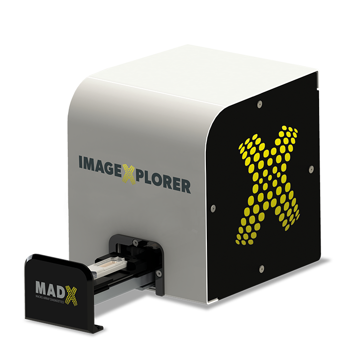 The QualityXplorer controls the performance of the ALEX³ assay procedure. It contains a mixture of antibodies that react with defined allergens on the ALEX³. As an accessory, the QualityXplorer ensures the quality of the assay procedure of ALEX³ over time and serves as an early warning system about MADx system performance .