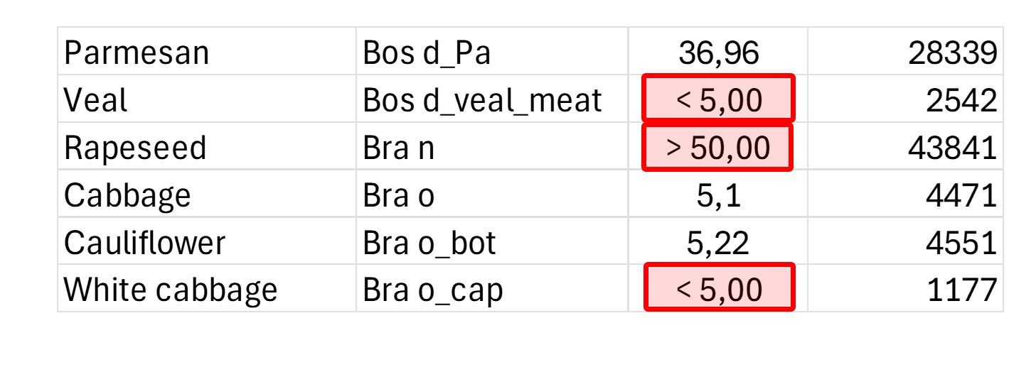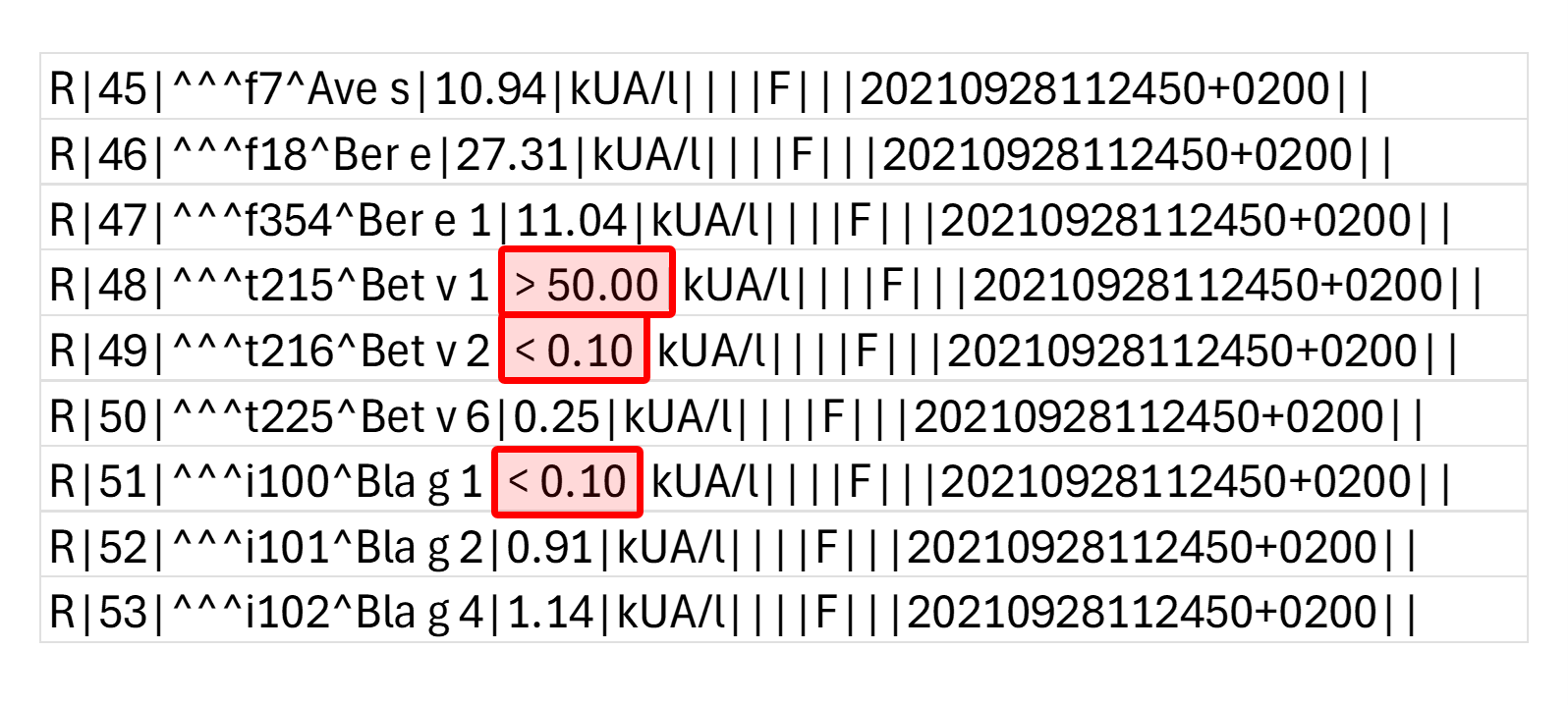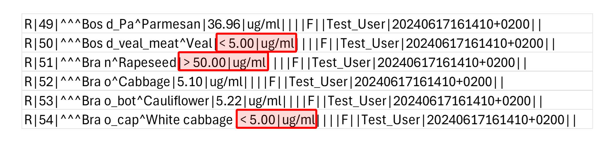 Im Zuge der Vereinheitlichung der Anzeige werden ASTM-Exporte mit Werten unterhalb oder oberhalb des Schwellenwerts nicht mehr als konkrete Werte angezeigt, sondern als Bereiche unter Verwendung der Symbole „kleiner als“ und „größer als“ wie in den übrigen Formaten.