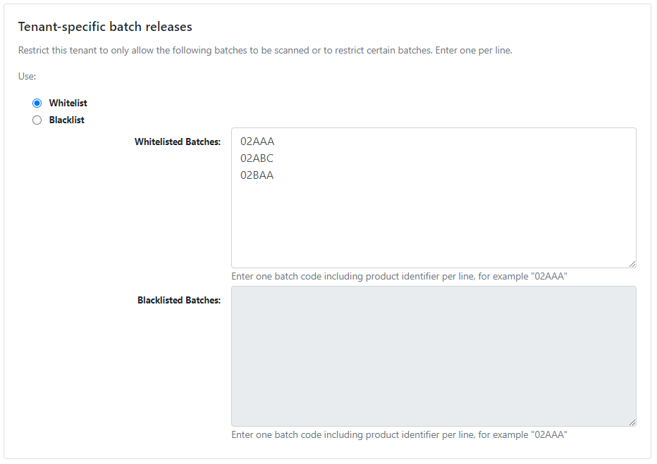 Wir haben die Nutzung des Tenant-Specific-Whitelisting-Features erweitert, so dass Benutzer mit dem Tenant-Zugriffsrecht „Kann grundlegende Tenant-Konfiguration verwalten“ nun auch in der Lage sind, bestimmte Batches auf eine Blacklist zu setzen.